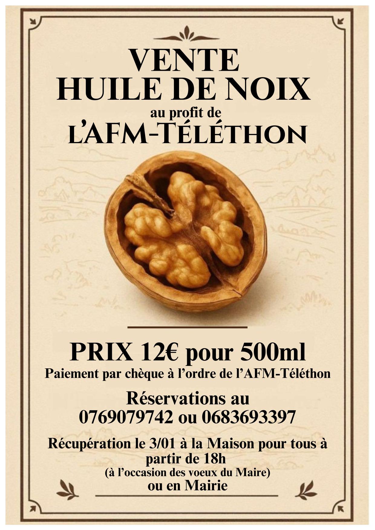 [LENS-LESTANG] : Vente Huile Noix Telethon